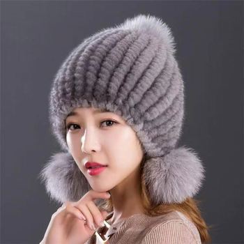 Fashion Fur Ball Cap Russia Fur Hats Beanie Hat Thick Winter Real Soft Natural Rex Rabbit Fur Hat