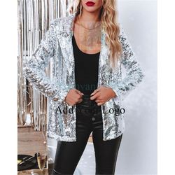 Giacca Cardigan con paillettes Casual Slim Fit colletto con risvolto Shinny giacca a manica lunga New Lady primavera autunno cappotto con paillettes