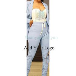 Elegante Blazer Ternos das mulheres Cintura Slim Lace up Jacket Casaco e Calças Conjunto de Duas Peças Mulheres Moda Calças Suit