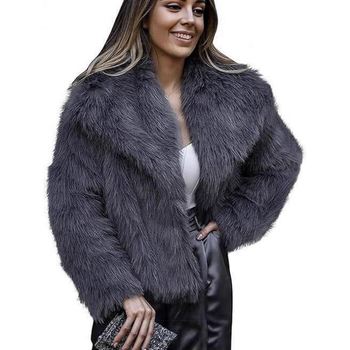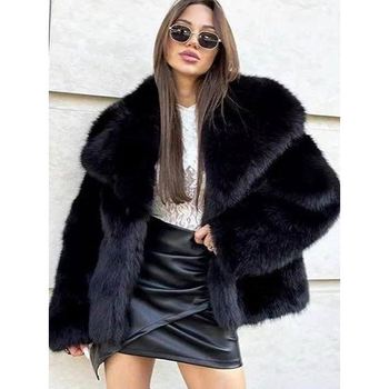Mulheres Grande Lapela Casacos Senhoras Manga Longa Curta Estilo Faux Fur Coat